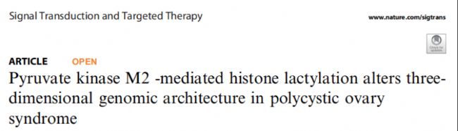 11月19日,復(fù)旦大學(xué)附屬婦產(chǎn)科醫(yī)院黃荷鳳院士團隊聯(lián)合楊紅波、劉欣研究員團隊,在國際知名期刊Signal Transduction and Targeted Therapy(STTT,IF=52.7)發(fā)表題為“Pyruvate kinase M2-mediated histone lactylation alters three-dimensional genomic architecture in polycystic ovary syndrome”的重磅研究成果。該研究首次揭示了丙酮酸激酶M2(PKM2)核易位后通過調(diào)控組蛋白乳;⒅厮芑蚪M三維結(jié)構(gòu),驅(qū)動多囊卵巢綜合征(polycystic ovary syndrome,PCOS)發(fā)生的分子機制,為PCOS的精準(zhǔn)治療提供了全新靶點。