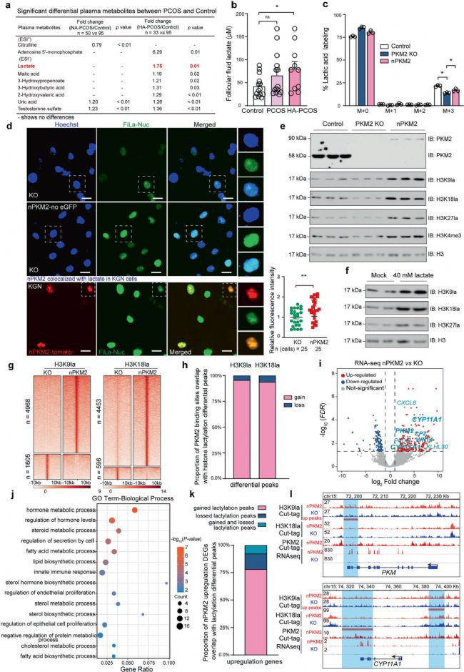 PKM2的核積累改變了全局組蛋白乳酸化格局,并增強PCOS相關(guān)基因的表達