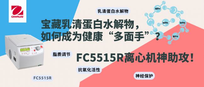 通過實驗發(fā)現(xiàn),新型酶解乳清蛋白水解物在調(diào)節(jié)脂質(zhì)、抗氧化甚至神經(jīng)保護(hù)方面,都展現(xiàn)出了令人驚喜的潛力!而這一切的背后,離不開奧豪斯FC5515R離心機(jī)的穩(wěn)定支持——憑借精準(zhǔn)的溫控與高效的離心表現(xiàn),它在超濾步驟中順利區(qū)分出不同分子量的活性肽段,既保障了水解度測定的準(zhǔn)確性,也最大程度保留了樣品的生物活性。