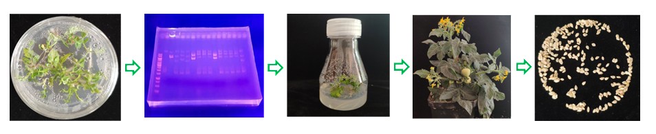 以葉片、莖段和試管薯作為轉(zhuǎn)基因受體材料,用攜帶目標(biāo)基因載體的農(nóng)桿菌侵染受體材料,將T-DNA插入到基...