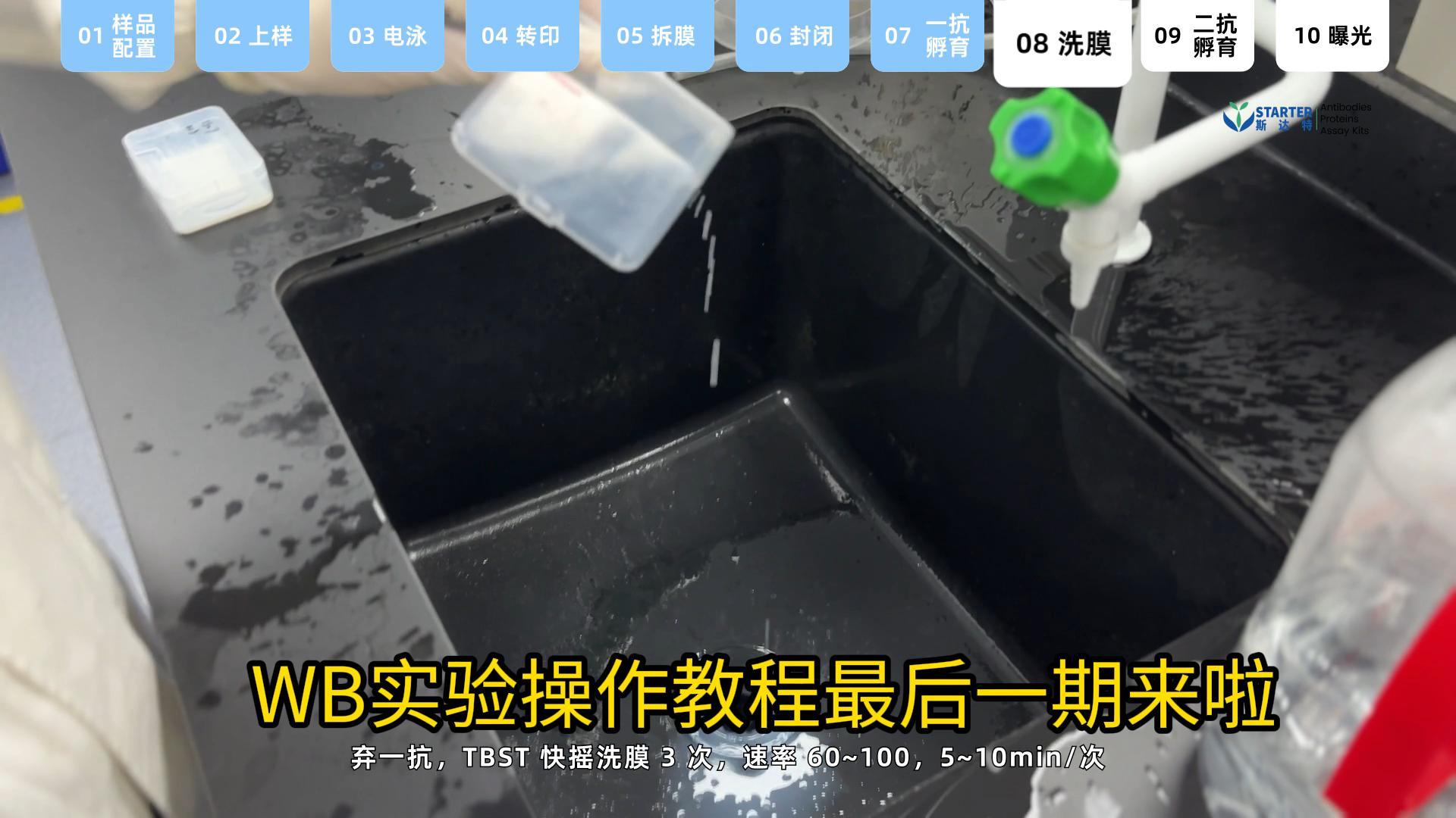 本期視頻為大家演示W(wǎng)B實驗操作第八步洗膜,第九步二抗孵育,第十步曝光。