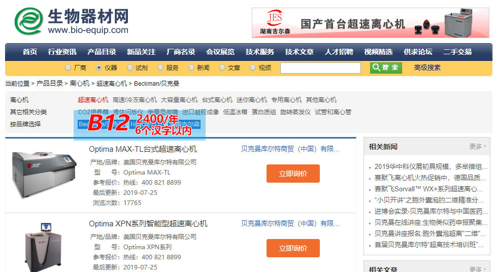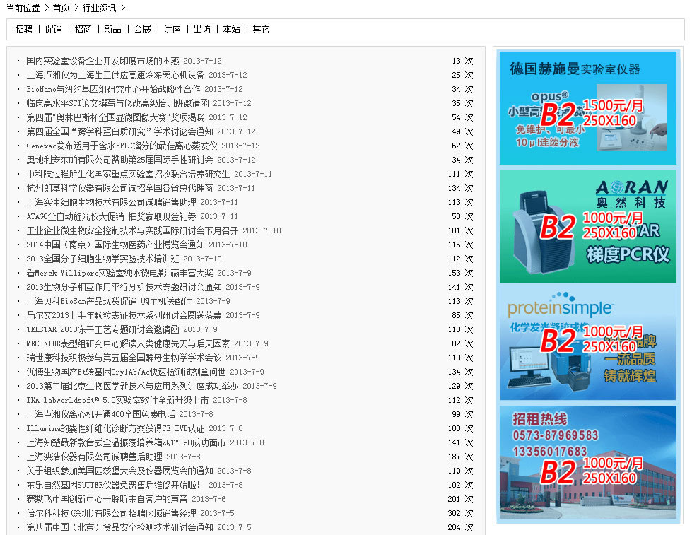 | B2 | 行業(yè)資訊右側上方 | 方塊圖片 | 250X160 | 24000 | 行業(yè)資訊欄目曝光率高,圖片長寬比例恰當。 |