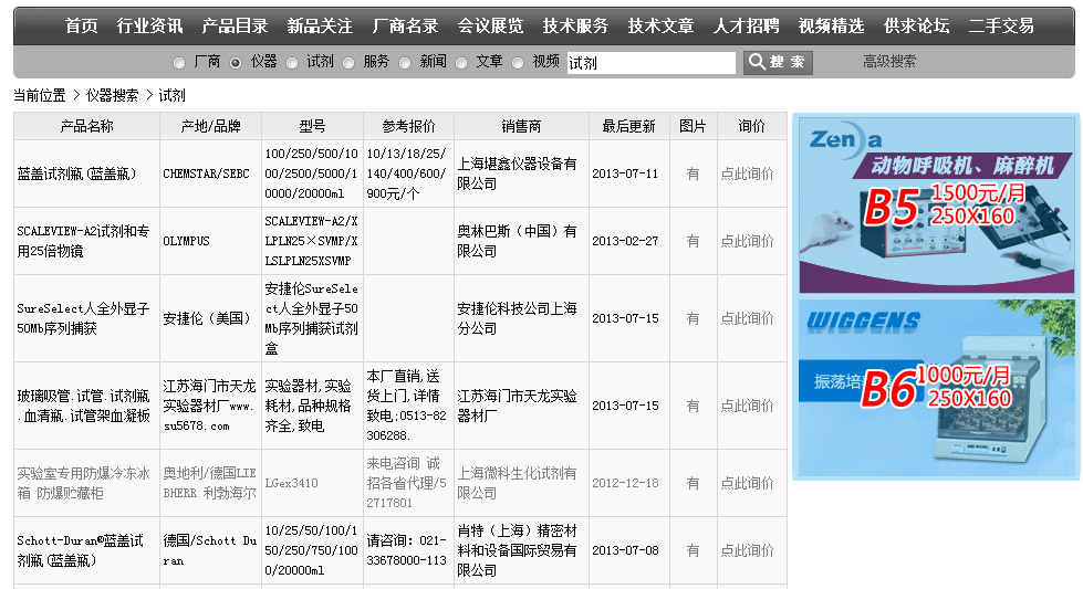 | C1 | 儀器分類欄目 | 第1頁第1條至第5條 | 1000 |