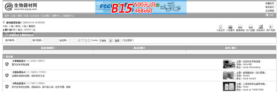 | B15 | 論壇上方 | 橫幅(Banner) | 468x60 | 6000 | 該論壇是供需雙方都會經(jīng)常光顧的地方,效果極佳。 |
