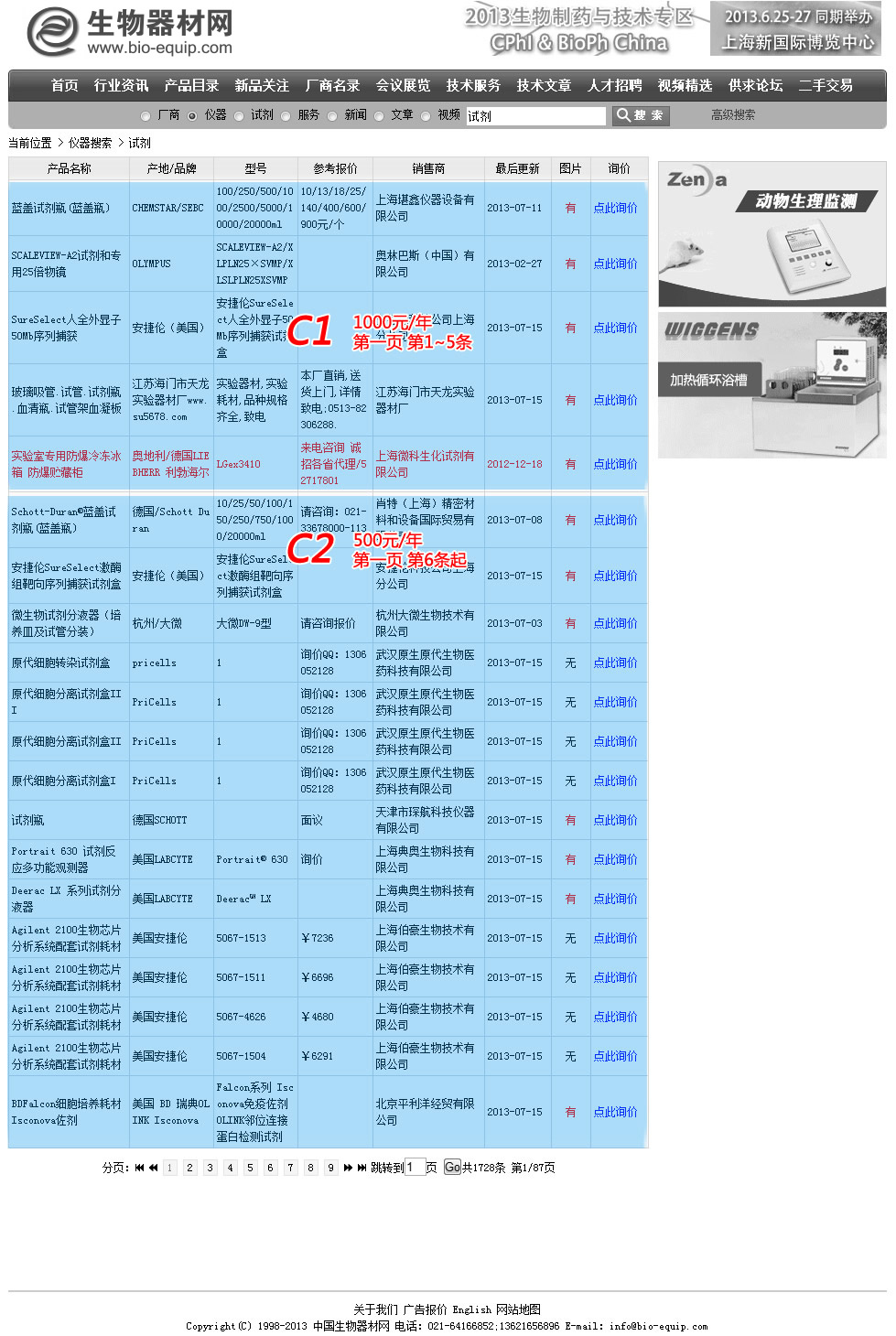 | B1 | 行業(yè)資訊頂部 | 橫幅(banner) | 468x60 | 12000 | 出現(xiàn)在點擊率非常密集的行業(yè)資訊頁面,宣傳效果好。 |