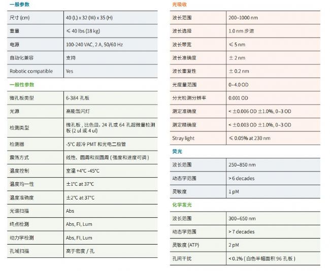 技術(shù)參數(shù) -SpectraMax Mini 多功能微孔板讀板機(jī)